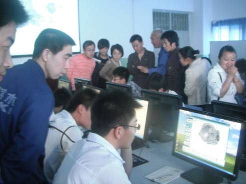 王主任就汽车工程系的实训室设置和作用做了介绍王主任介绍汽车电控实训台王主任带领参观汽保设备发动机底盘拆装实训室介绍电工电子实训室简单模拟王主任带领介绍汽车拆装检测的模拟软件,学员们兴趣盎然王主任亲自送参观学员离去